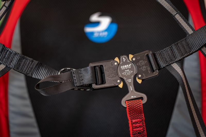 - Hevederzete a népszerű "4S" rendszerelvű („SKY SAFETY STRAP SYSTEM”), az egy körös kialakítás magas biztonságot és kényelmet nyújt.